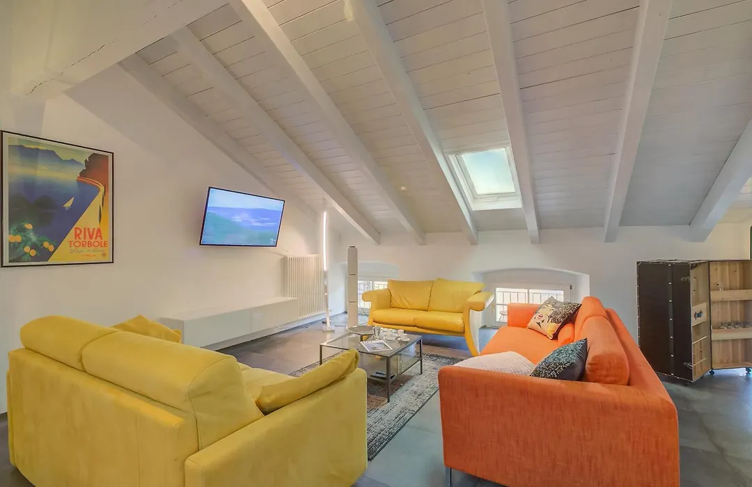 The spacious 95 m^2 Loft & Jacuzzi - Happy Rentals is located nearly a 25-minute stroll from Waterfall Varone Cave Park and offers spa facilities such as a Jacuzzi. Reptiland Zoo is a 5-minute walk away, while Spiaggia Lungolago is also 3.3 km from the 1-bedroom apartment.